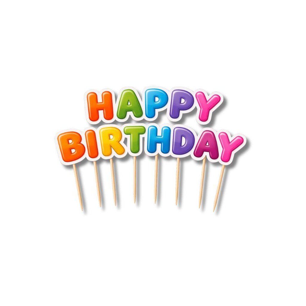 Zápich do dortu barevný Happy Birthday (13 ks) ▹