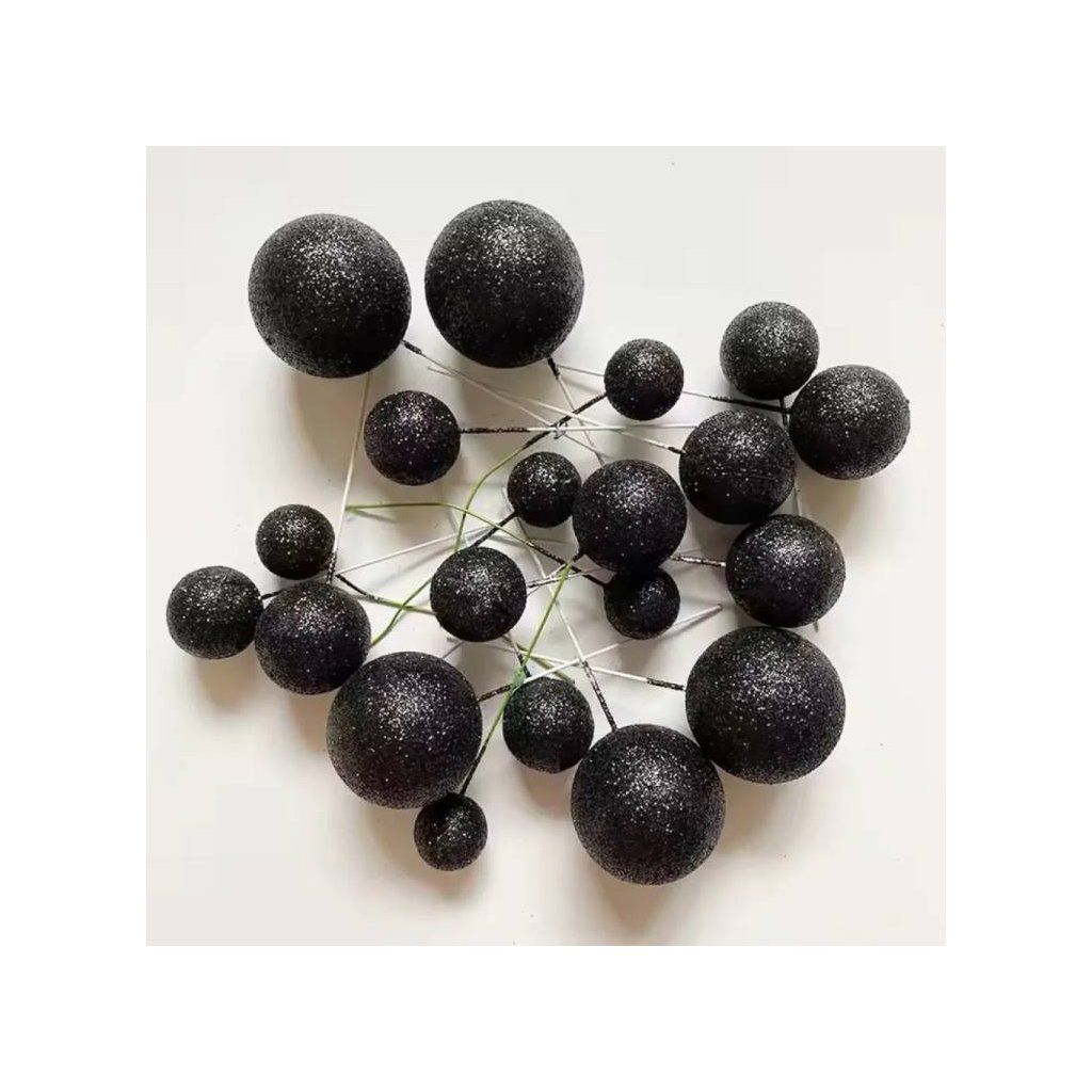 Zápich do dortu Koule černé glitterové různé velikosti (20 ks) ▹
