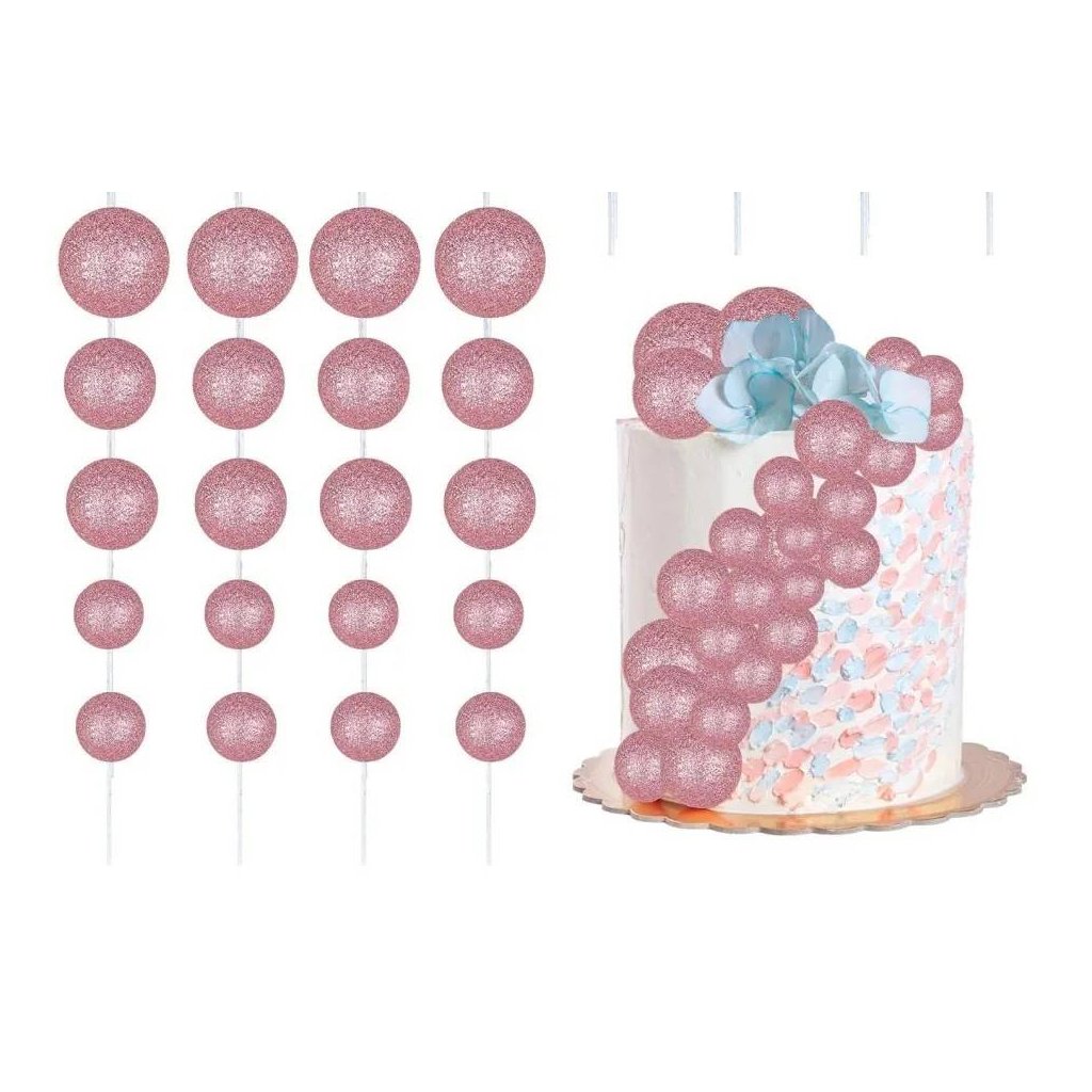 Zápich do dortu Koule růžové glitterové různé velikosti (20 ks) ▹