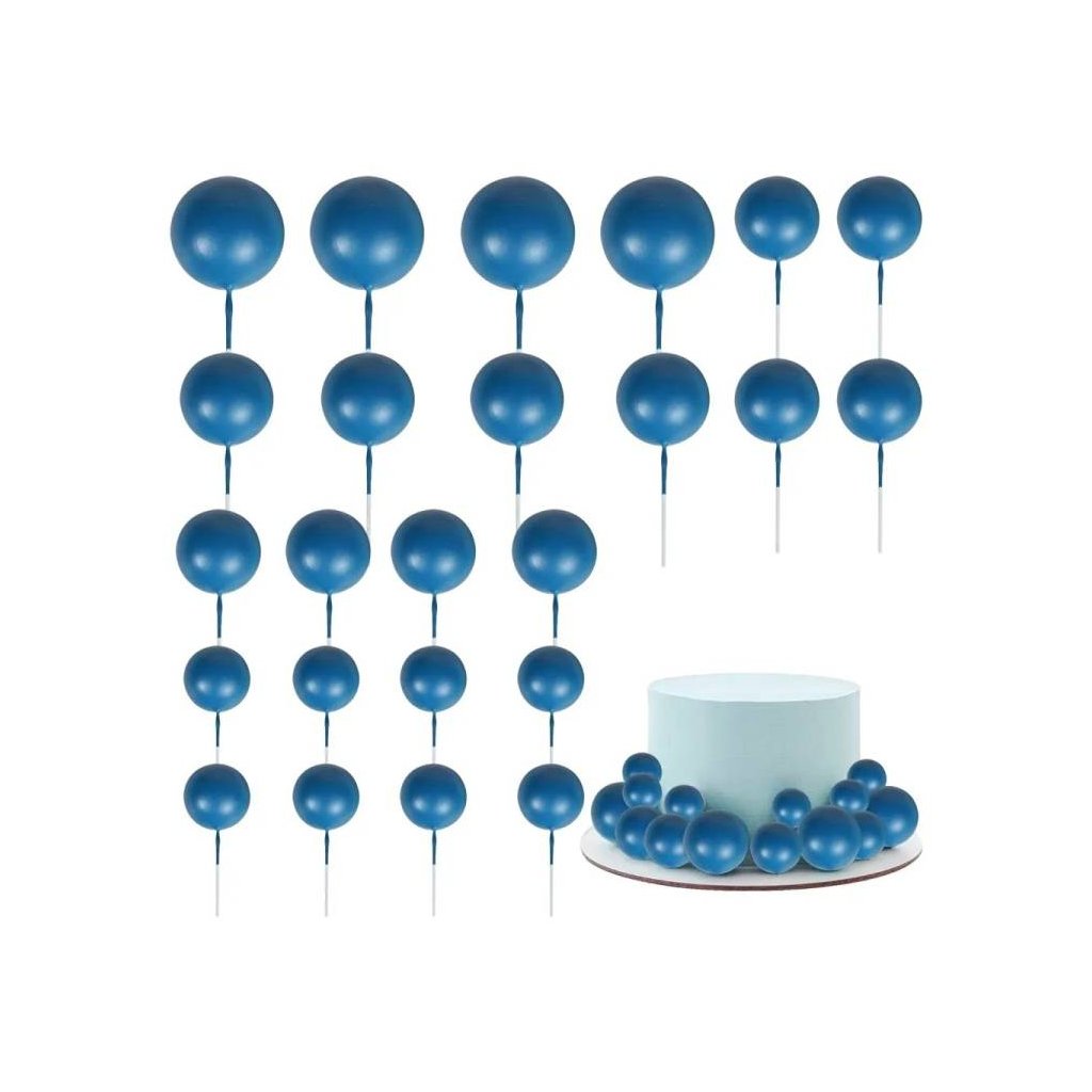 Zápich do dortu Koule tmavě modré různé velikosti (20 ks) ▹