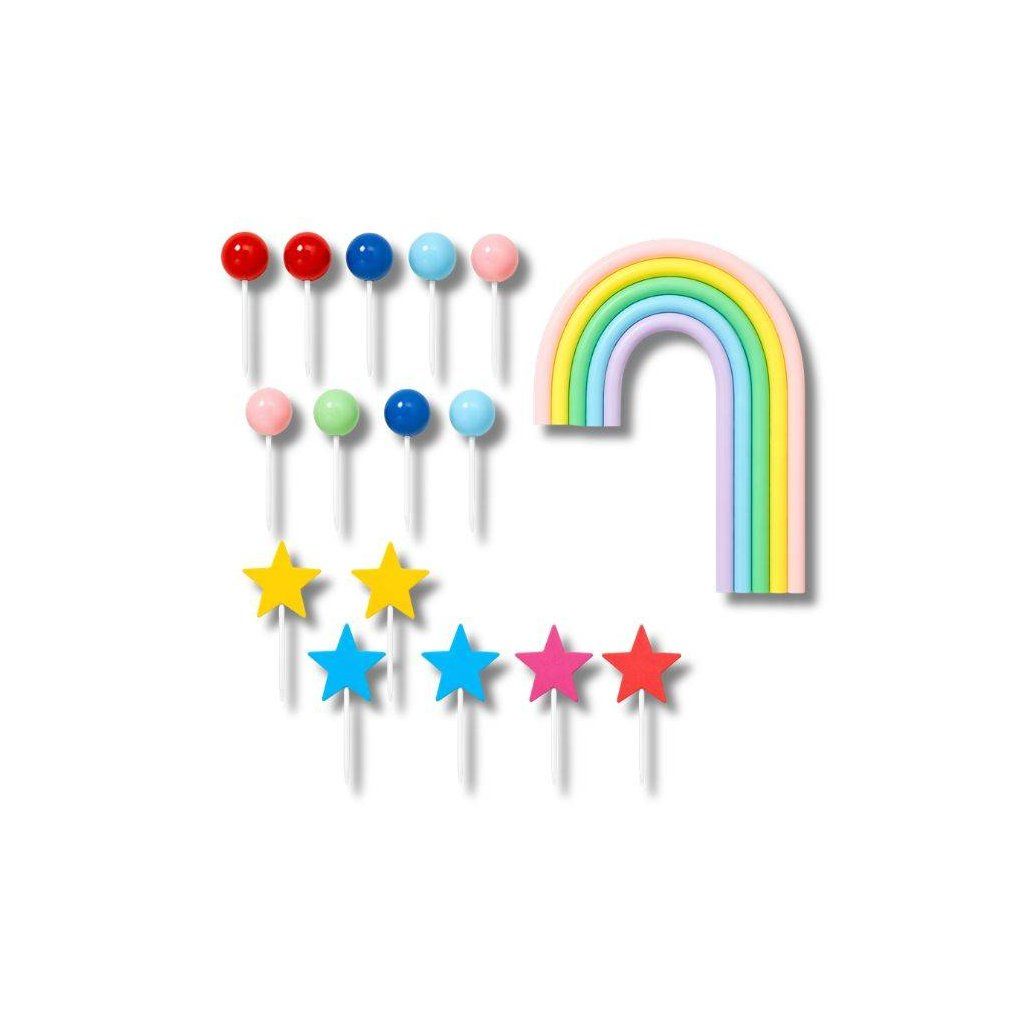 Zápich do dortu Pastelová duha s hvězdami a koulemi (26 ks) ▹