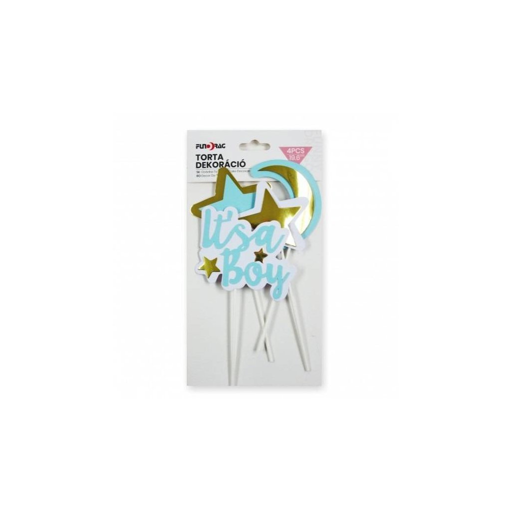 Zápich do dortu rmodrý It's a Boy s měsícem a hvězdami (4 ks) ▹