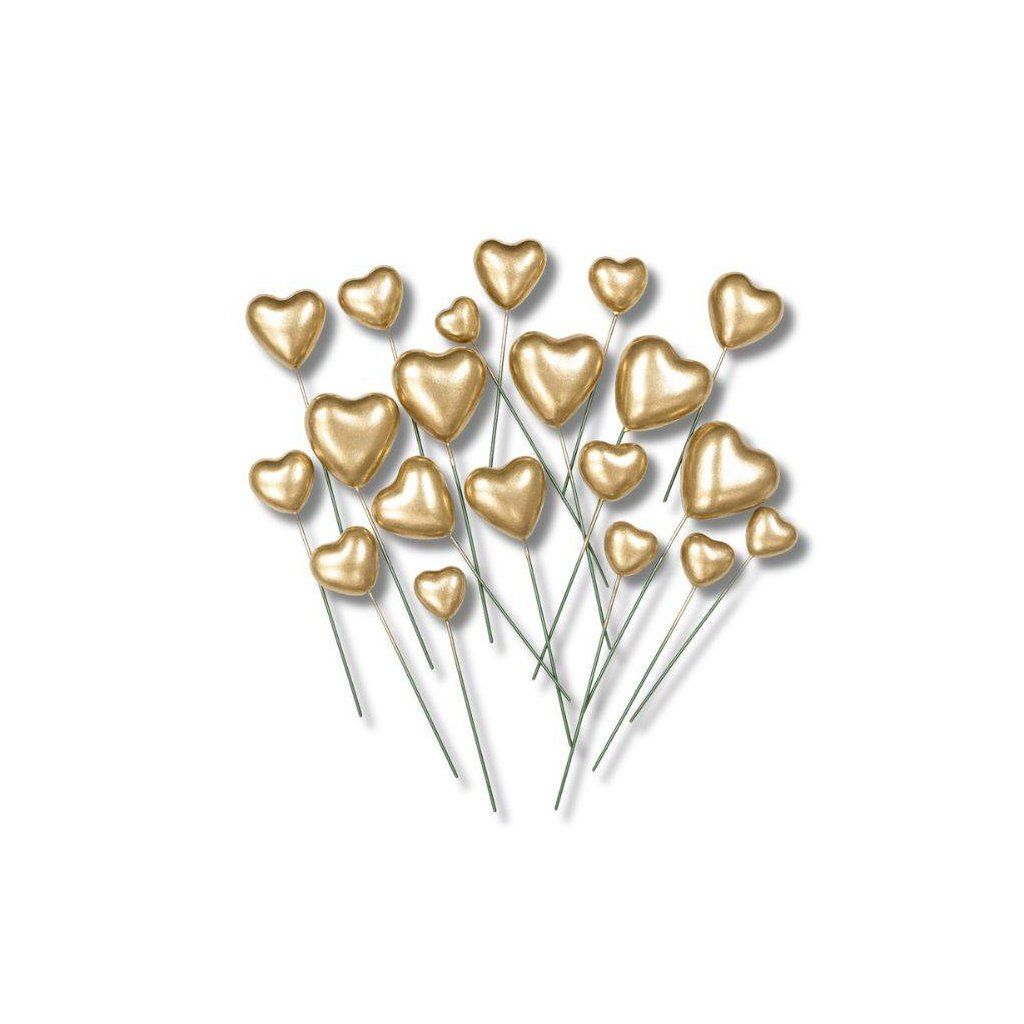 Zápich do dortu Srdíčka zlatá různé velikosti (20 ks) ▹