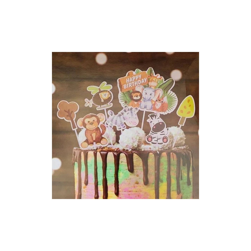 Zápich do dortu Happy Birthday safari (7 ks) ♡