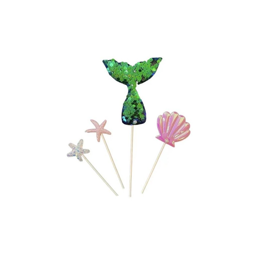 Zápich do dortu Ocas mořské panny zelený s mušlí a hvězdicemi (4 ks) ♡